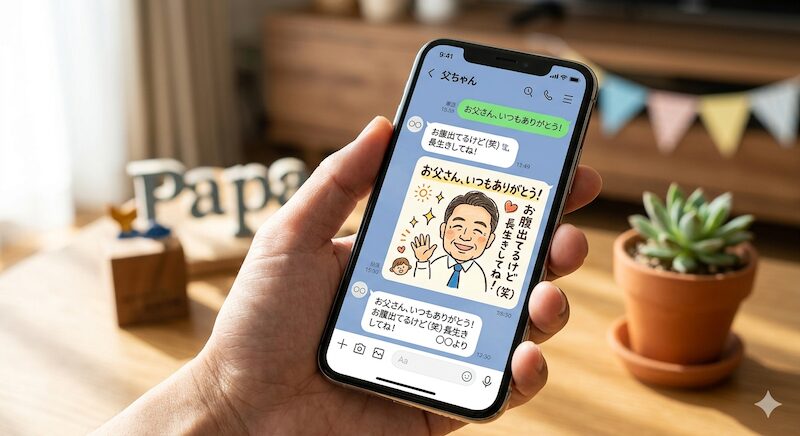 LINEなどでメッセージを送る場合は、あえて言葉の内容とギャップがある「シュールなスタンプ」を添えてみてください。文字だけでは伝わりにくい絶妙なニュアンスが伝わり、お父さんも思わずニヤリとしてしまうはずです。