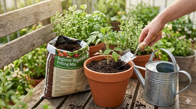 - 野菜専用の「培養土」: 土選びは最も重要です。あらかじめ肥料が配合されている「元肥(もとごえ)入り」の野菜用培養土を選べば、袋を開けてそのまま使えます。